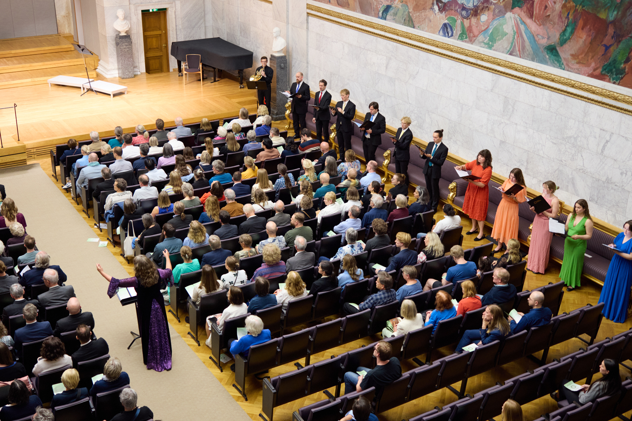 I have been their conductor for 22 years! The next three years will be exciting with lots of plans and visions. Later this year, we are going on a tour to Dresden and Prague, and in November we are doing a big Bruckner concert with the Staff Band of the Norwegian Armed Forces in the beautiful Aula of the University of Oslo, a place in which we do all our big concerts and feel at home. maybe this venue has the best acoustics of all halls in Oslo. Maybe. It is for certain the most beautiful venue. All the walls are covered with big paintings by Edvard Munch. The dresses and ties are colors from the paintings surrounding us.