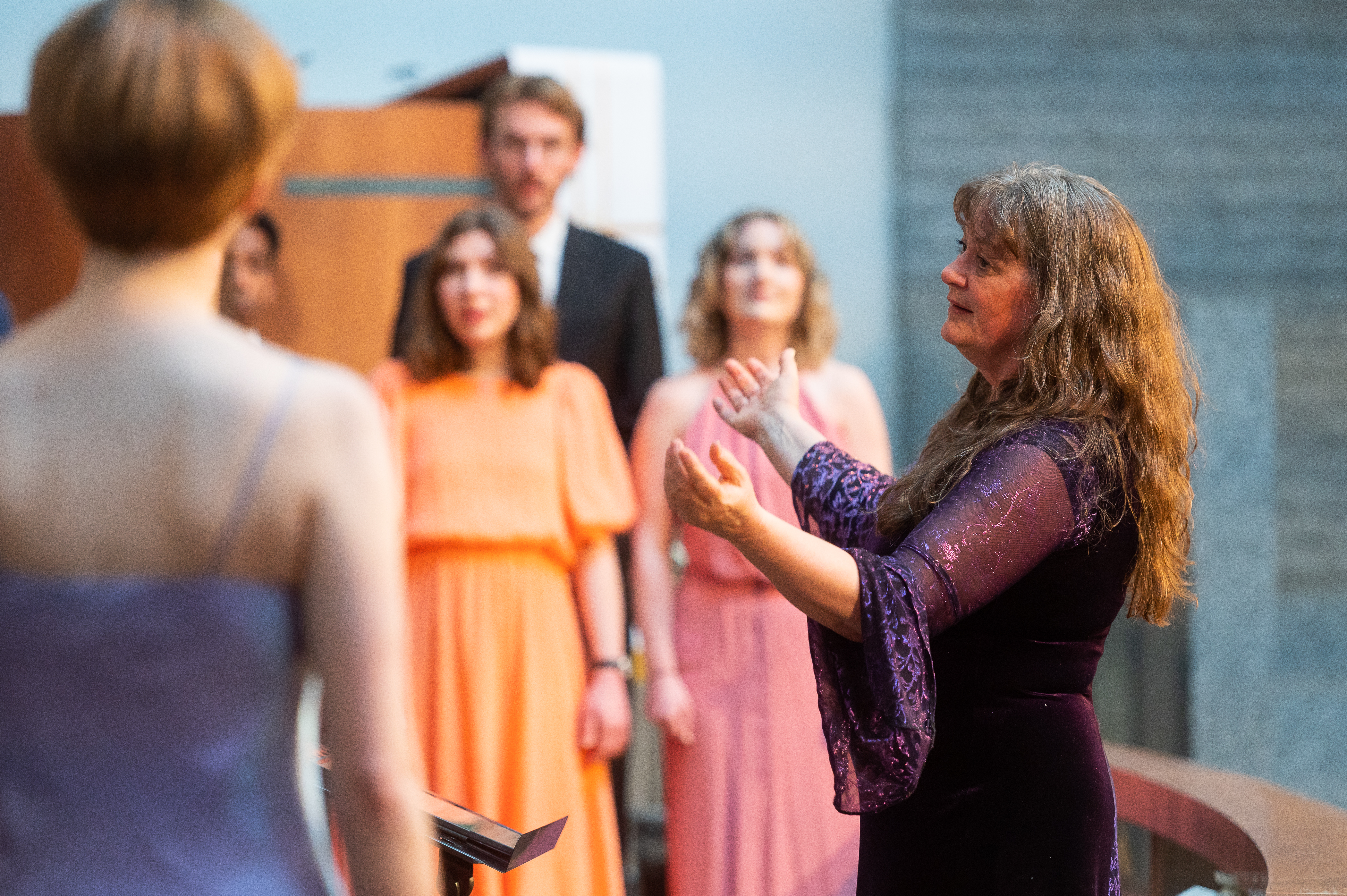 She is also the conductor of the chamber choir Schola Cantorum and the Chamber Choir YMIR, and is frequently used as lecturer for choirs and choral conductors in many countries.